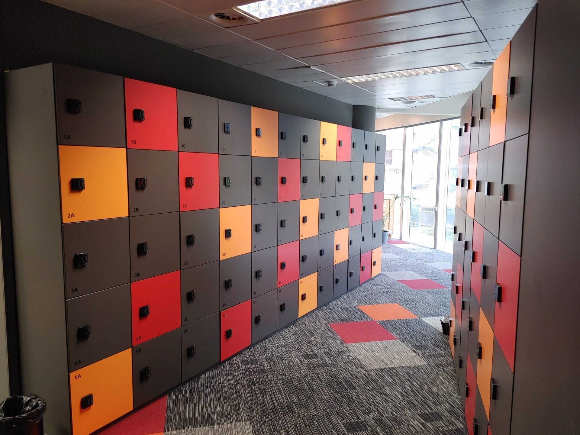 Taquillas de compacto de resina fenólica. Con pantalla táctil y software o con apertura por app.